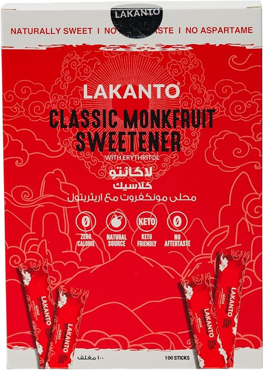 Lakanto sweetener is a natural sugar substitute made from erythritol and monk fruit it delivers a clean sweet taste with zero calories and does not spike blood sugar levels making it suitable for diabetics keto and healthy lifestyles it dissolves easily and can be used in coffee tea juices and everyday foods without affecting flavor