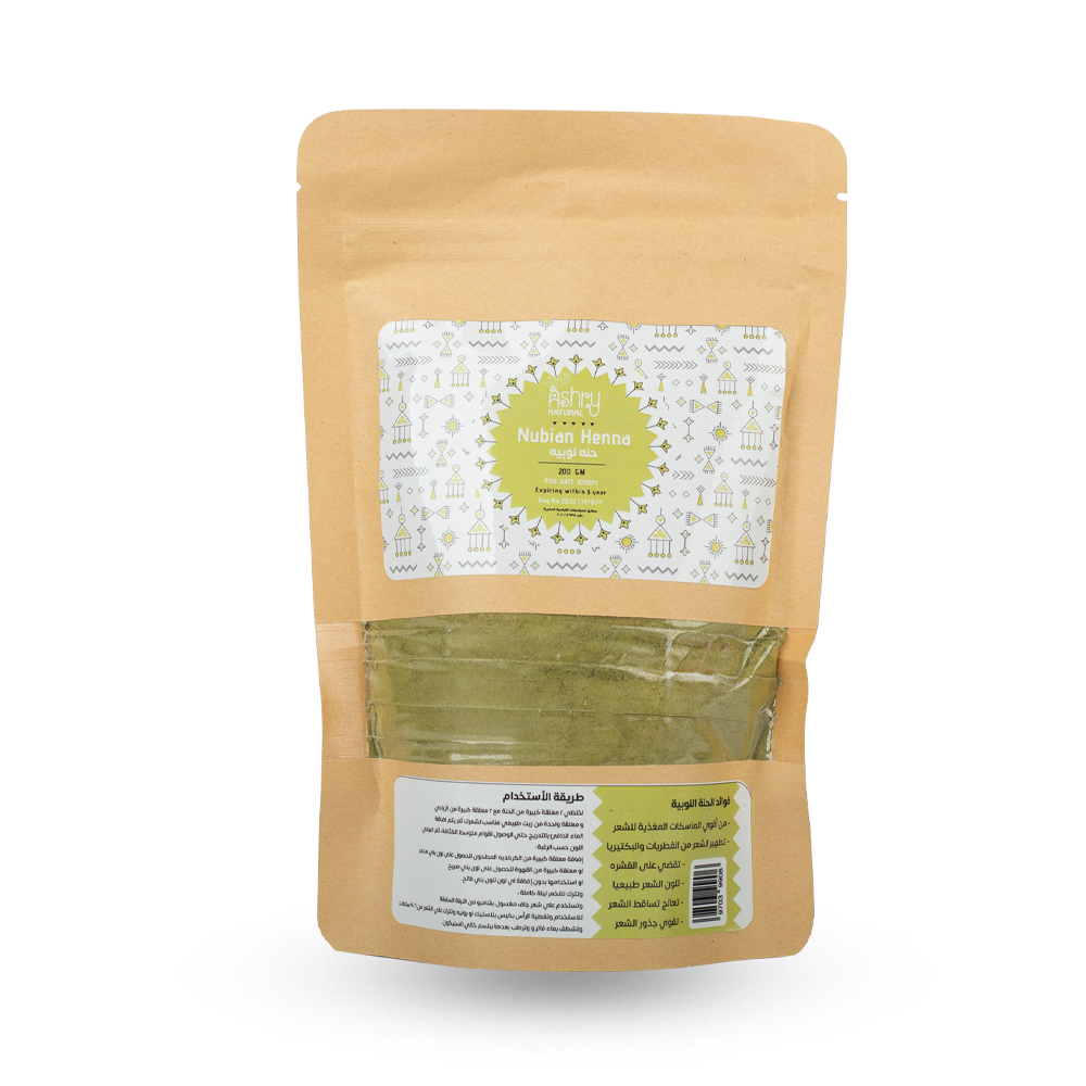 Natural Nubian Henna is made from traditional Nubian herbal extracts that provide rich natural color while deeply nourishing the scalp and hair follicles It helps strengthen the hair from the roots reduce hair loss and prevent breakage thanks to its pure botanical ingredients that enhance smoothness and shine It also soothes the scalp leaving it fresh and revitalized Suitable for all hair types it delivers a natural long lasting color and healthy shine from the first use