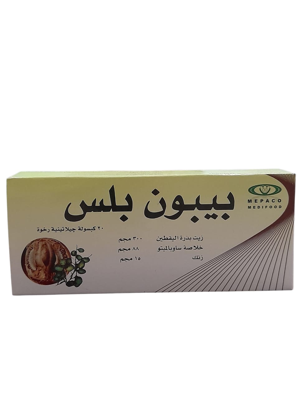 An advanced formula enhanced with Saw Palmetto, which helps reduce the effects of DHT hormone and improves symptoms of benign prostatic hyperplasia (BPH) Main Ingredients: Pepon Plus: Pumpkin Seed Oil + Saw Palmetto Extract Uses: Prostate support – Reduces frequent urination – Improves urine flow.