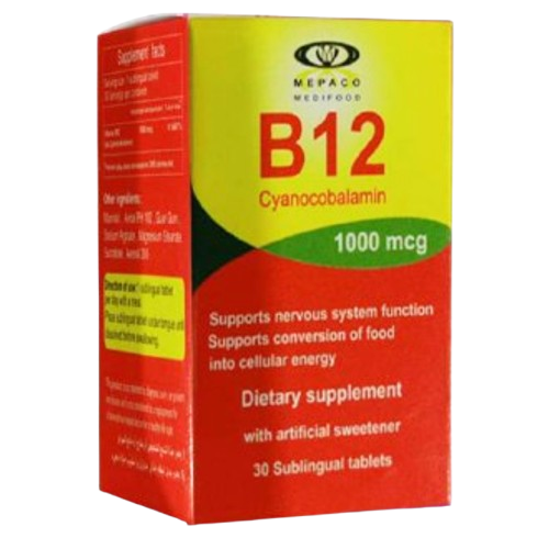 Mebaco Vitamin B12 designed to support daily energy and vitality enhance nervous system and brain health help in red blood cell formation maintain essential body functions and reduce fatigue with regular use